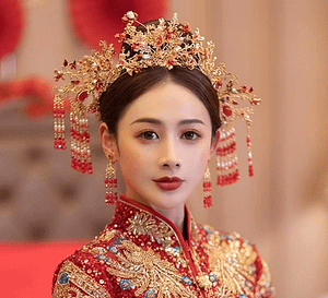 تاج ققنوس، از سلسله مینگ (۱۳۶۸-۱۶۴۴)، یکی از باشکوهترین زیورآلات عروس است. این تاج با جواهرات، مروارید و طرحهای ققنوس تزئین شده و نماد قدرت، زیبایی و تجدید حیات است. عروسهای مدرن نیز به دلیل زیبایی و اصالت این تاج، آن را انتخاب میکنند.